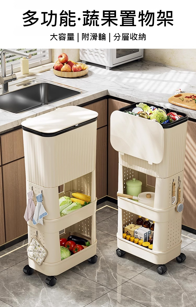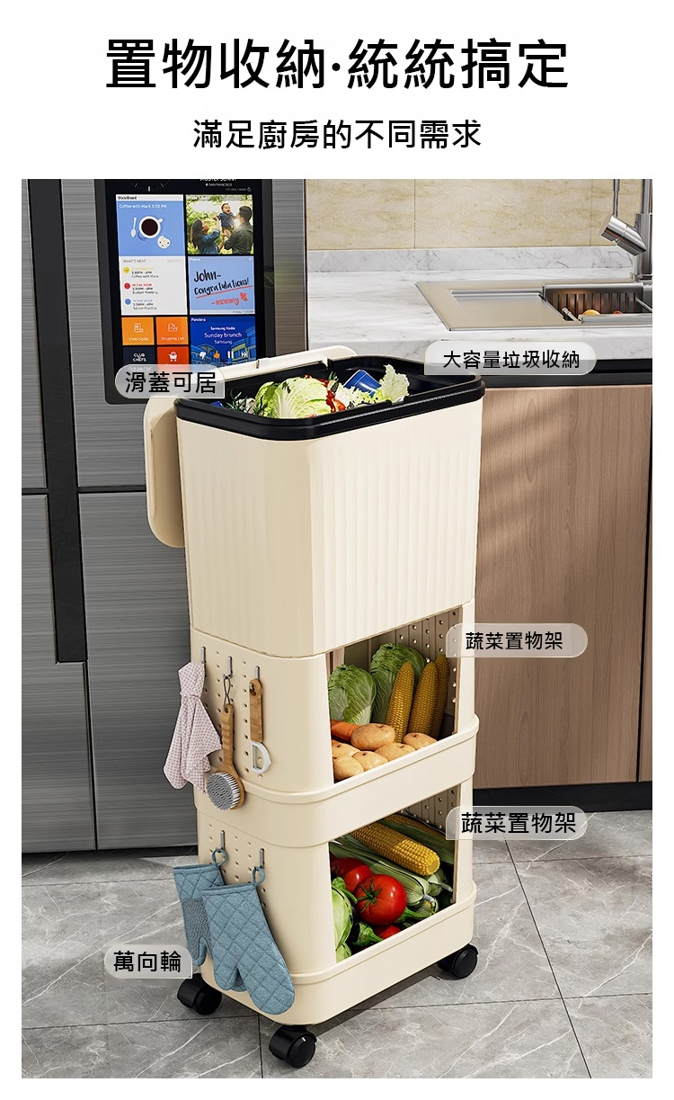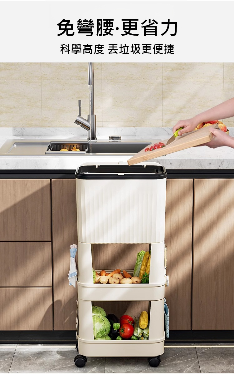 【不彎腰】家用可移動多功能置物垃圾桶